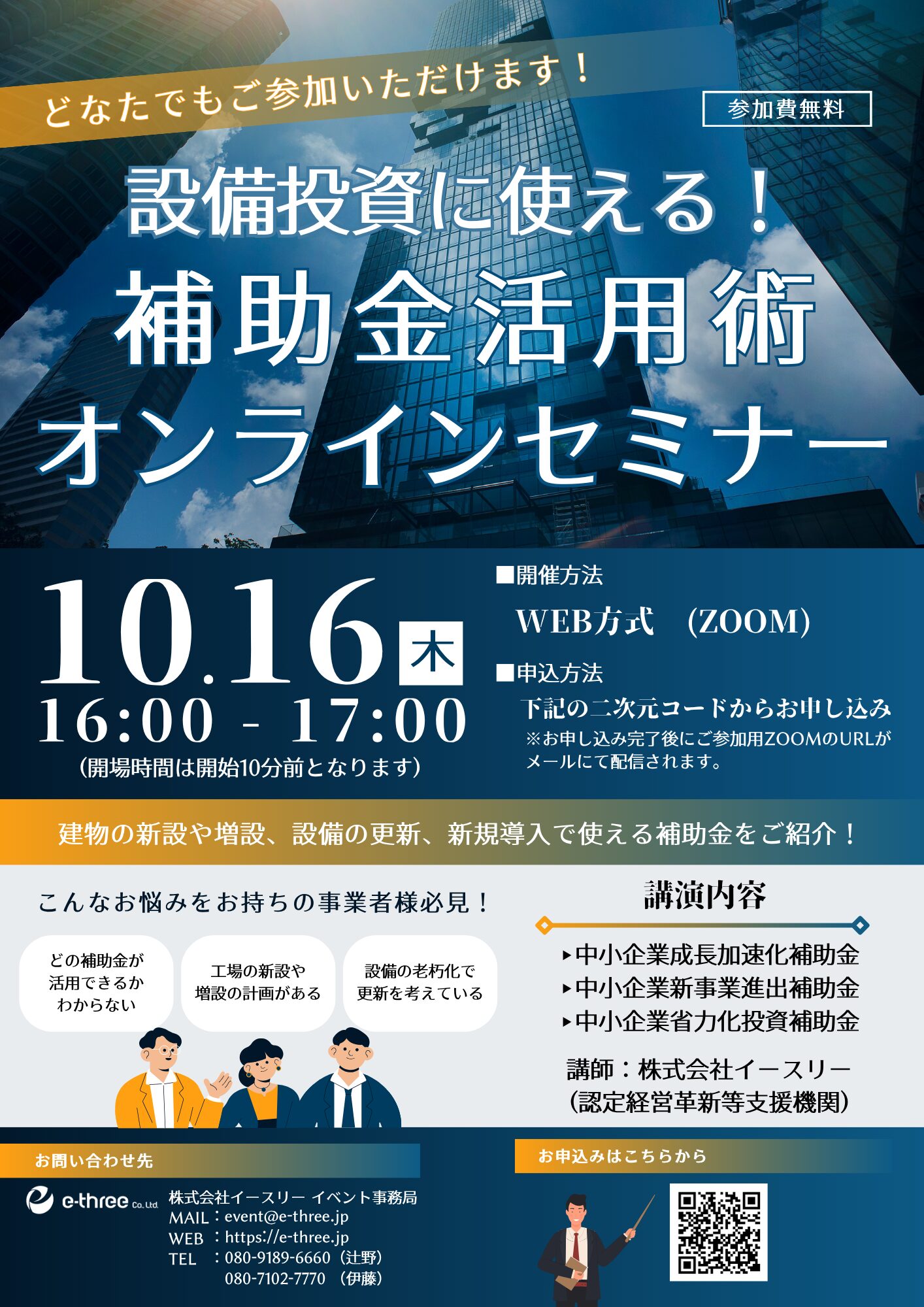 2025年10月16日(木)イースリー主催 「設備投資に使える!補助金活用オンラインセミナー」を開催いたします。