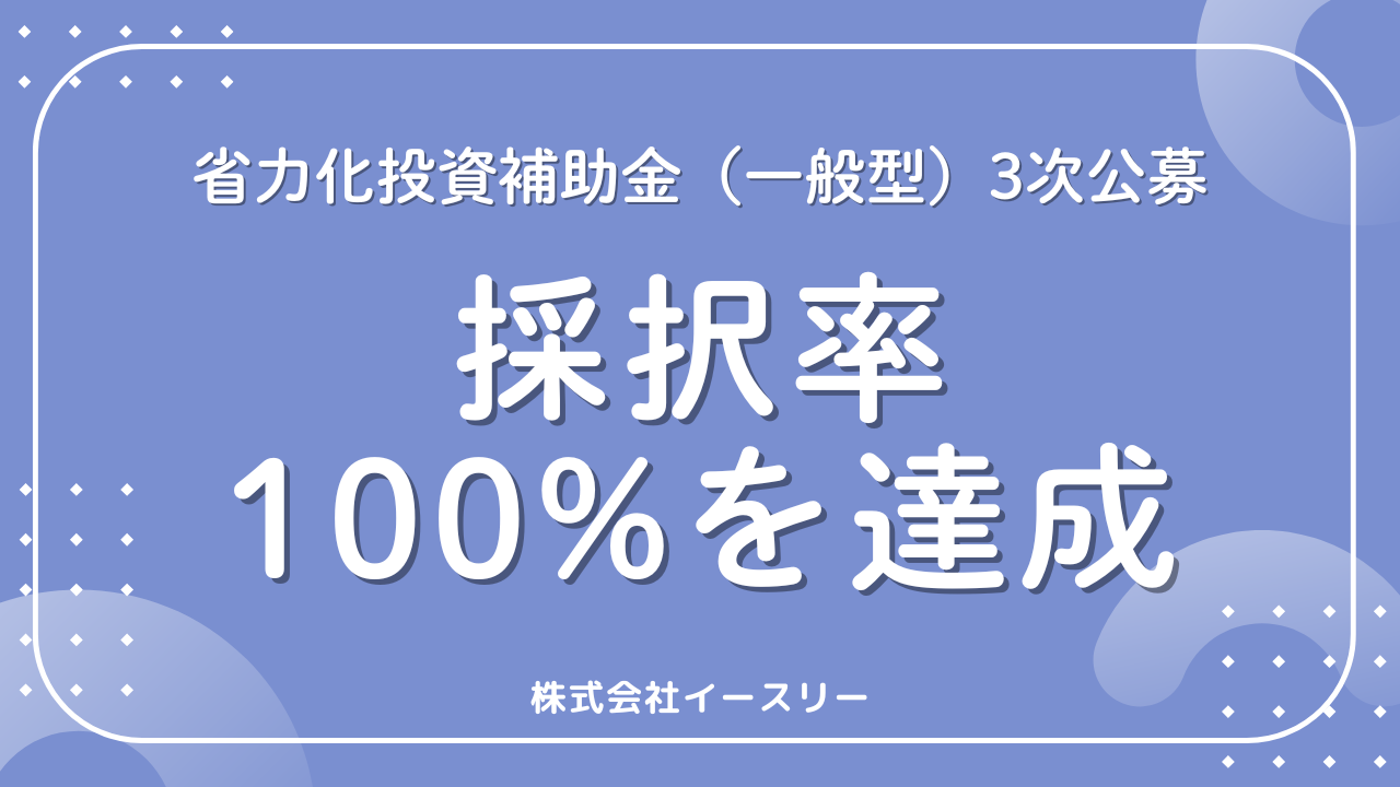 株式会社イースリーがご支援した「省力化投資補助金(一般型・第3次公募)」において、ご支援した全件が採択(採択率100%)となりました。
