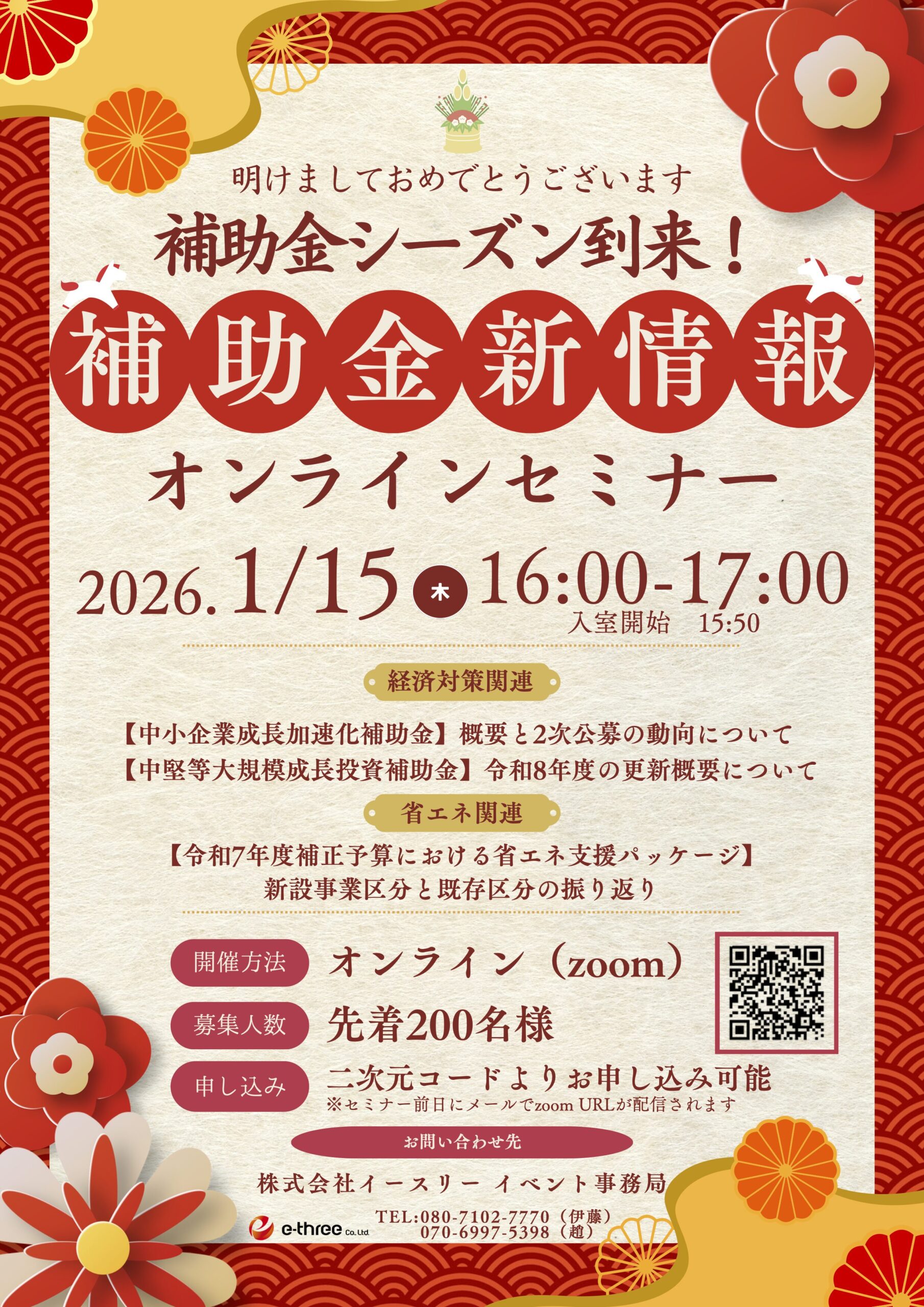 2026年1月15日(木)イースリー主催「補助金シーズン到来!補助金新情報オンラインセミナー」を開催いたします。