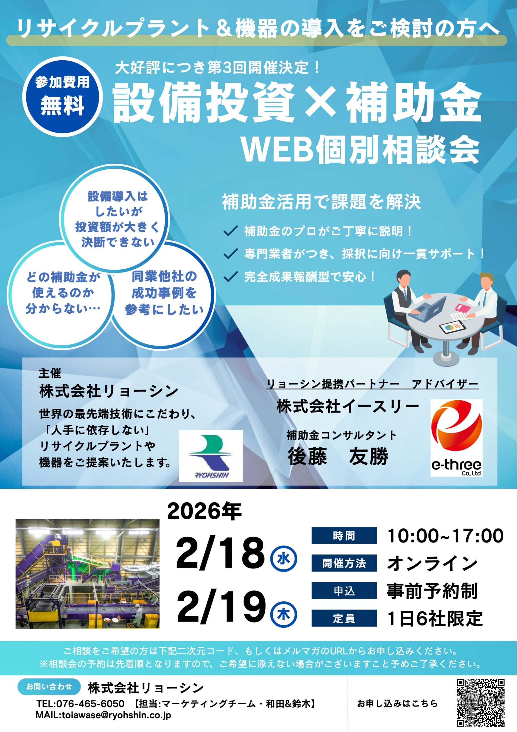 【第3回開催決定】\設備投資×補助金/リサイクル業様向けWEB個別相談会を開催いたします。