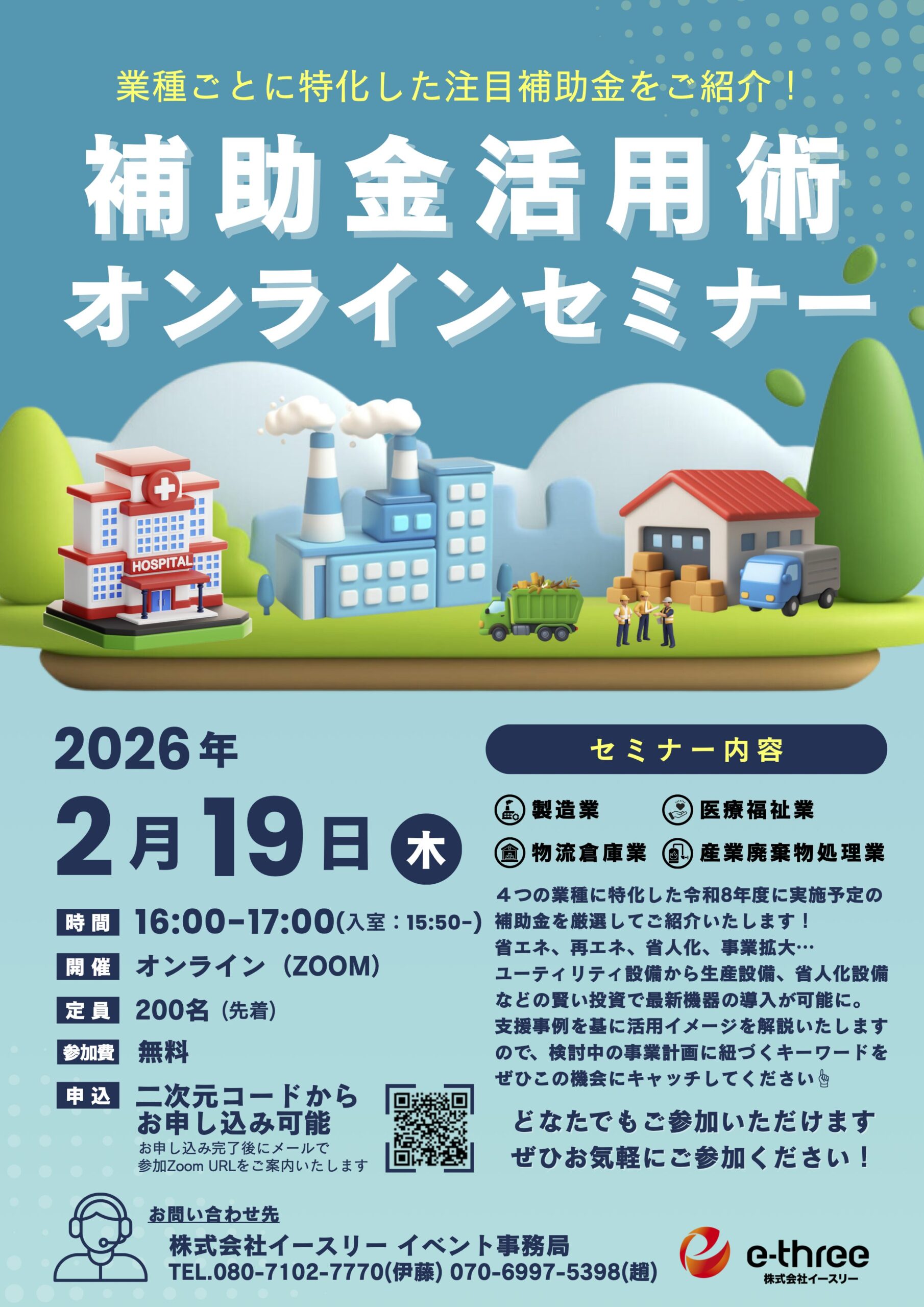 2026年2月19日(木)イースリー主催「業種ごとに特化した注目補助金をご紹介!補助金活用術オンラインセミナー」を開催いたします