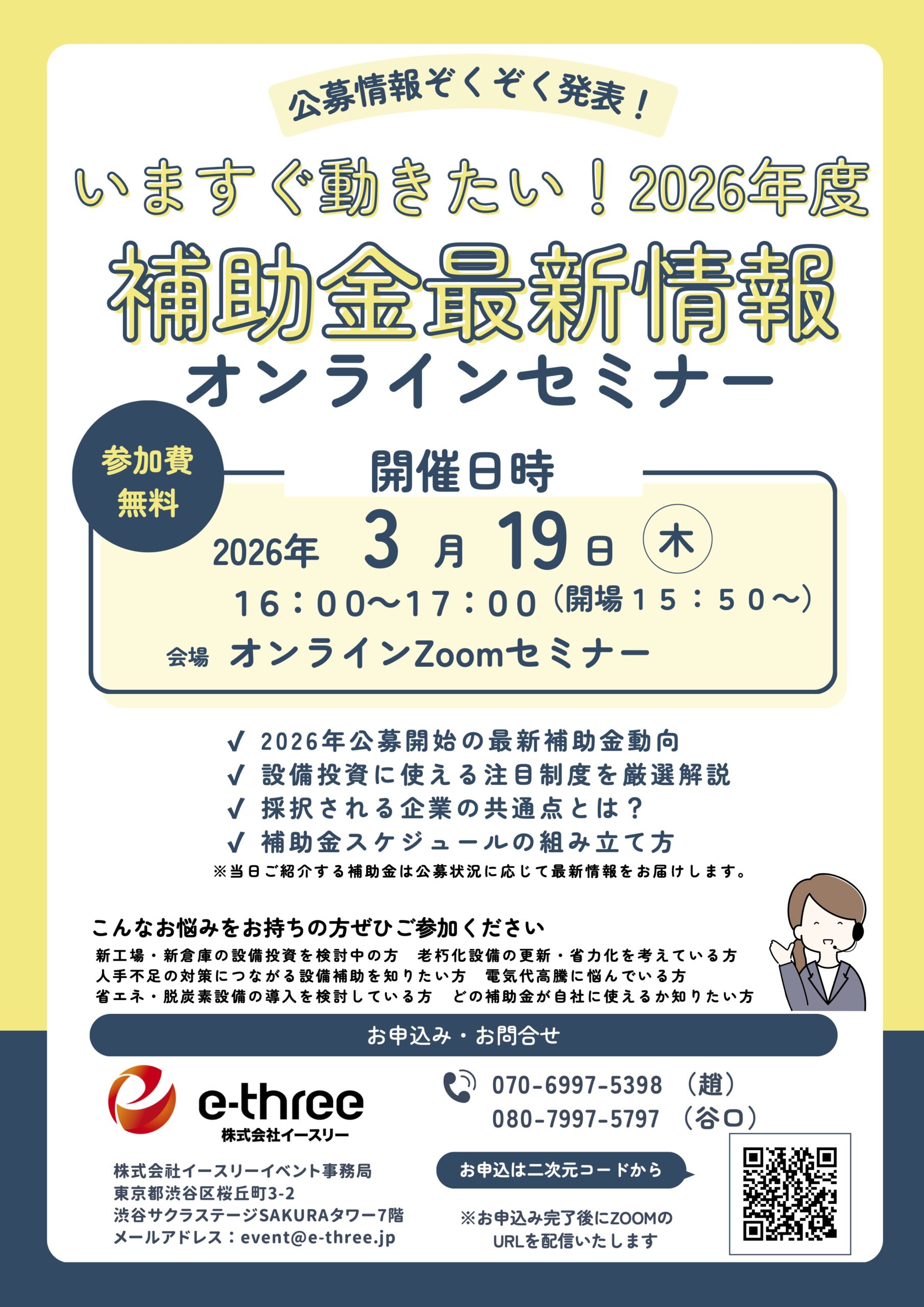 2026年3月19日(木)イースリー主催「2026年補助金が動き出します!補助金オンラインセミナー」を開催いたします