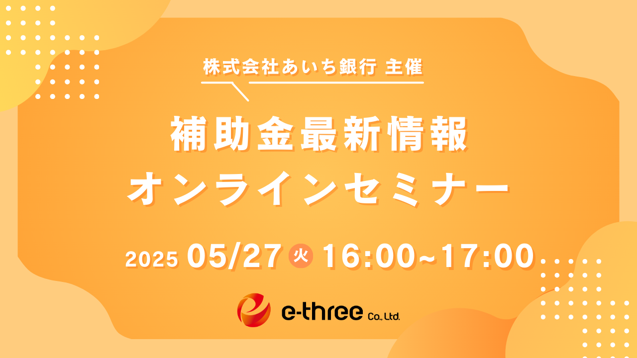 2025年5月27日(火)株式会社あいち銀行、株式会社イースリー共催「補助金最新情報オンラインセミナー」を開催いたします。
